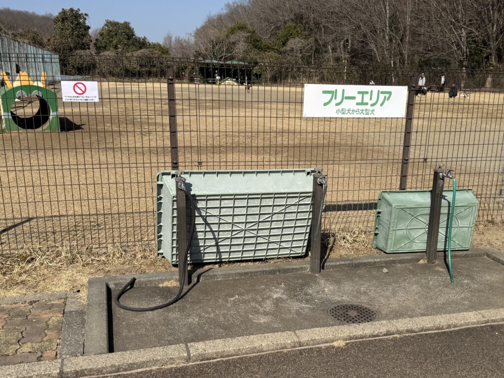 エリアは小型犬用とフリーエリアに分かれておりフリーエリアのほうが広く遊具も設置されています。足洗い場も設置されています。